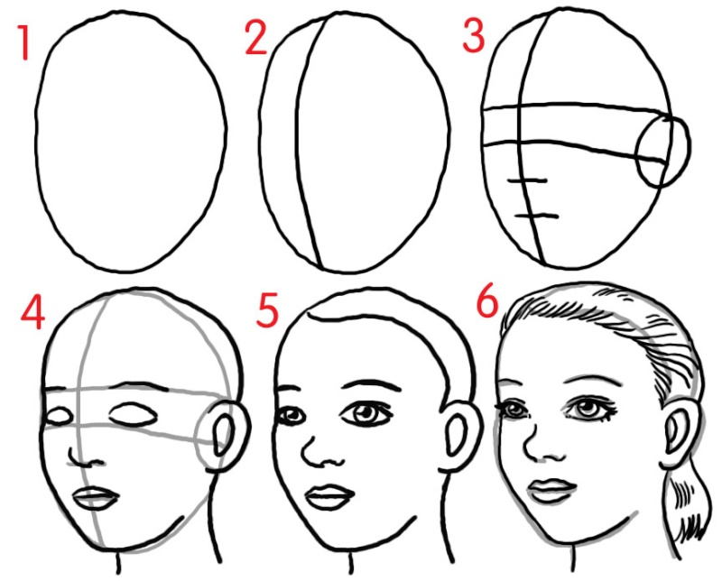 1) faire un ovale pour le visage